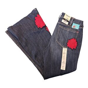 The western theme is in this fall. Dare to flare in this statement-making pair. Part of the Ariat limited-edition collection with Rodeo Quincy, this high-rise jean comes in a dressy dark wash and features the brand's iconic red roses. An instant rodeo outfit.