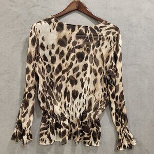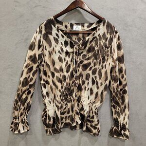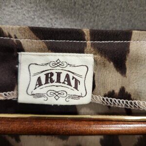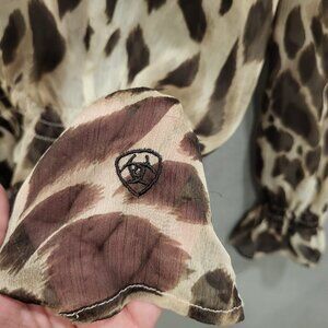 Ariat Sheer Blouse Women's Size Large Long Sleeve Leopard Print Tie Front Boho