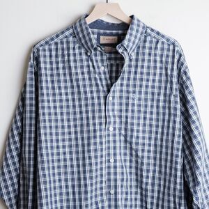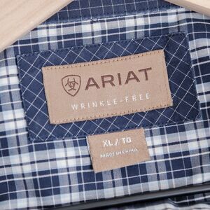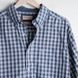 Ariat Shirt Men XL Navy Blue Wrinkle-Free Plaid Long Sleeve Button Down Western