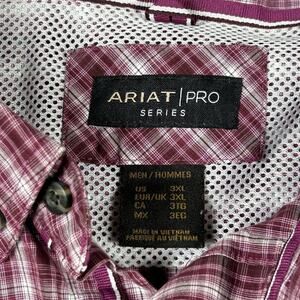 Ariat Shirt Mens 3XL Burgundy Plaid Pro Series Button Down Long Sleeve Mesh