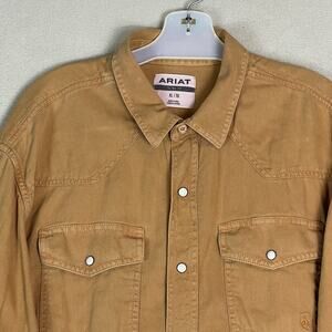 Ariat Shirt Mens XL Mustard Yellow Retro Fit Snap Up Long Sleeve Pockets Western