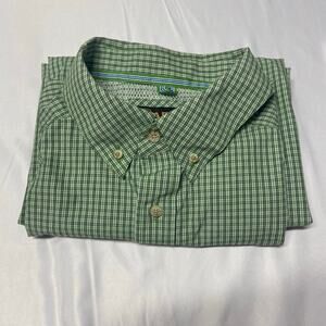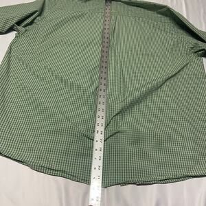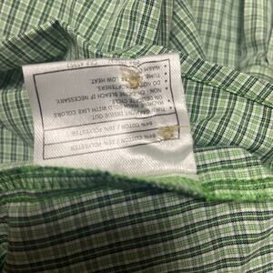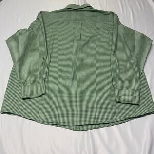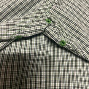 Gently used. Looks like almost new. Small plaid design. Nice green color. Button down collar. Button up front. One pocket. Long Sleeve. Please, see all photos for more details as they are part of my description. Comes from smoke and pet free studio. Approximate measurements are laying flat.