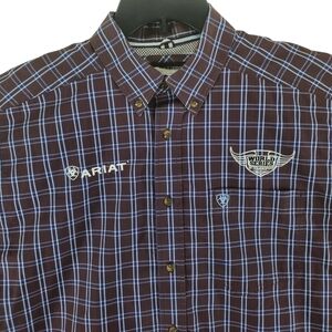 Ariat Shirt Pro Series Mens L World Series Roping Rodeo Brown Multi LS Raywood