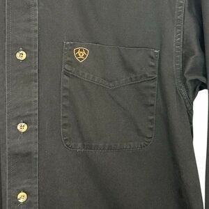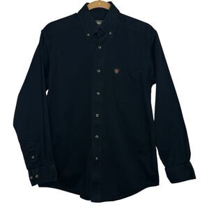 Ariat Shirt S Black Solid Twill Western Classic Fit Button Down Logo Pocket Mens