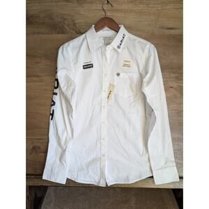 Ariat Shirt Womens Medium White Stretch Fitted Wrinkle-Resistant Button-Up NWT