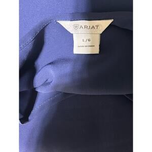 The shirt comes in a stunning blue color with a paisley pattern and button accents. It's a regular fit size L, perfect for women who want to look their best while feeling comfortable. The shirt is machine washable, making it easy to care for. So, whether you're going to a rodeo or just want to add some cowboy flair to your outfit, this Ariat shirt is the perfect choice.