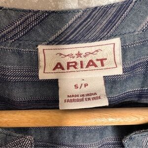 Ariat® Sleeveless Indigo Stripe,button-up Caroline top, western,beautiful condition, indigo with blue & deep purple stripes,the stripes blend nicely together, EUC This blouse is very high quality, made of 60% organic cotton.