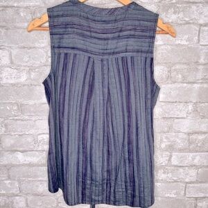 Ariat® Sleeveless Indigo Stripe,button-up Caroline top, western,beautiful condition, indigo with blue & deep purple stripes,the stripes blend nicely together, EUC This blouse is very high quality, made of 60% organic cotton.