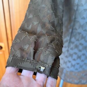 The Ariat size small sheer army green blouse is an eye-catching piece with intricate details.