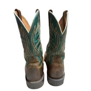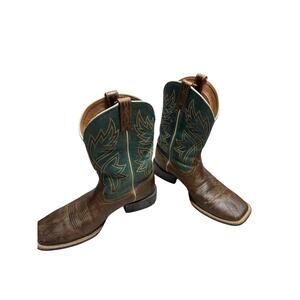 Ariat Square Toe Western Boots Blue Green Teal Shaft Brown Leather Men’s 9D