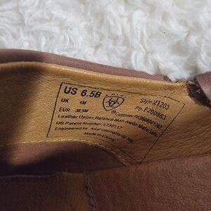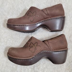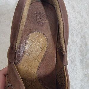 Ariat Strathmore Western Studded Clogs Brown Nubuck Size 6.5 excellent condition as shown in photos. Store stickers still on the bottoms of each shoe. Minor scuffs on the platform sole near heel as shown in photos.