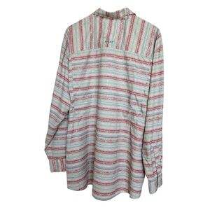 Elevate your casual wardrobe with this Ariat button-up shirt in a vibrant multicolor graphic print. Designed for comfort and style, this long-sleeve shirt features Ariatek Technology for enhanced breathability, making it perfect for those warm spring days. The regular fit and collared neckline offer a classic look, ideal for casual outings, weekend gatherings, or a relaxed day at the office. Crafted from durable polyester, it ensures lasting wear. This shirt is pre-owned but in great condition, ready to add a pop of color to your ensemble.