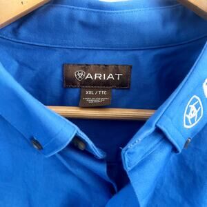 Ariat Team Logo Twill Classic Shirt Mens XXL Tall Blue USA Flag Stars Stripes.