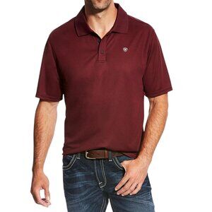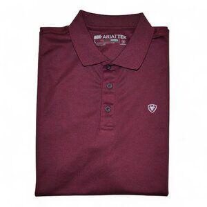 Ariat Tek Heat Series Polo Shirt Mens Size L Maroon Red Sun Protection VentTEK
