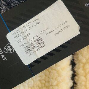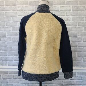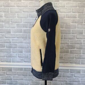 Ariat Tek Sherpa Baseball Bomber Jacket Cream Blue Fleece NEW Womens S Gorpcore