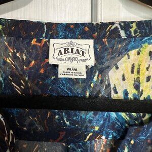 Ariat Tunic Top Blouse 3/4 Sleeve Abstract Colorful Sheer Western Cowgirl MEDIUM