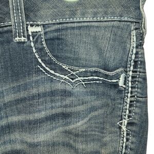 Holes on back of both legs at bottom from boots and spurs. Gives it a Western flare!