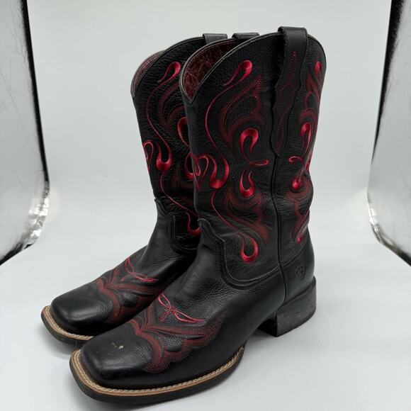 Ariat Whimsy Pink Accent Black Cowgirl Boots. Size 8.5B. Excellent condition! Elegant Ariat boots with pink stitching. Crafted from quality leather. Worn maybe once or twice.