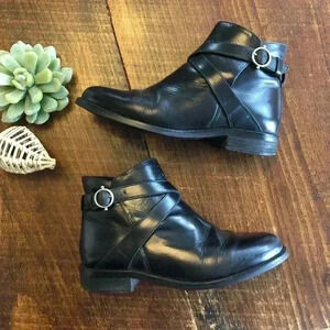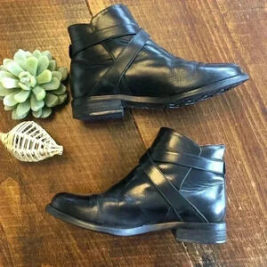 Ariat | “Windsor” Black Leather Ankle Boots, Crisscross Straps w/Buckle