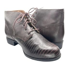 Pre-owned women’s Ariat Bancroft lizard skin emboss leather lace up ankle booties.