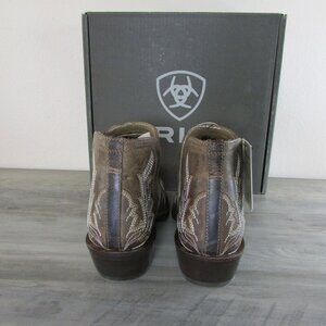 Ariat Women's 9.5 Low Heel Dixon Tooled-Inlay Snip Toe Western Booties Rhino Tan