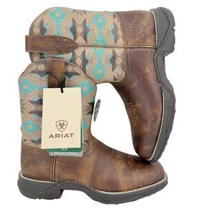 Ariat Womens Anthem Shortie Savanna Boots Size 7B Dry Taupe/Turquoise Aztec NWOB