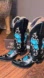 Elegant black boots with vibrant turquoise floral embroidery. Perfect for a stylish western look.