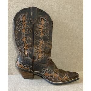 Ariat Women’s Dandy Western Boots Sz 8 B Snip Toe Leather Cowgirl 10007964 has a slight scuff on one of the toes. In great preowned condition clean