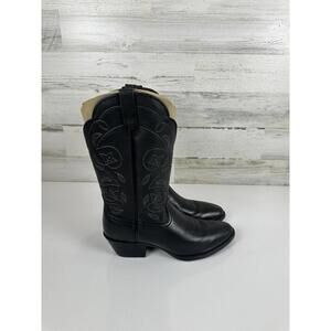 The Ariat Women's Heritage Western R Toe Western Cowboy Boot in size 8C wide is a stylish and durable boot designed for women who love the Western cowboy look. With a block heel and leather upper material, these boots offer both comfort and style. The wide calf width ensures a comfortable fit for those with a larger calf size. The classic black color and cowboy theme make these boots a versatile and stylish addition to any woman's wardrobe. Made by the reputable brand Ariat, these boots are sure to be a longtime favorite for any fashion-forward individual.