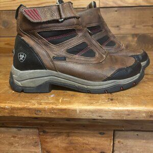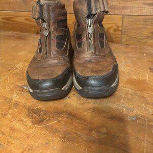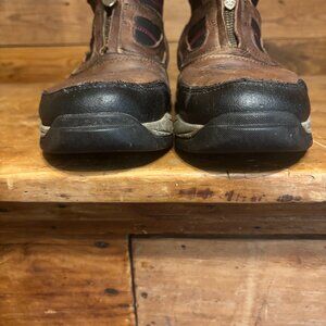 This is a quality boot, use for hiking or regular day use. Cute too! They zip rather than laces and then velcros at the ankle. Both the zippers and the velcro are in good condition. Light wear with plenty of good miles left in them. Made with quality leather, deep tread on the bottom with no signs of wear and clean. Women's size 7
