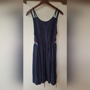 Ariat Womens Navy Embroidered Knee-length Sun Dress. Lightweight. Split shoulder straps. Ties behind back. No stretch. Size M Pit to pit flat lay 16" length from top of shoulder to hem 36.5" measurements are approximate
