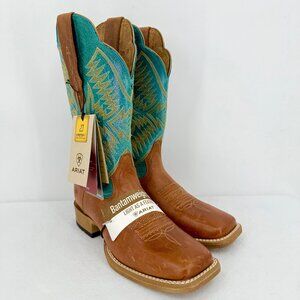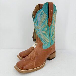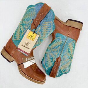 Ariat Women's Odessa StretchFit Almond/Turqueza Leather Western Boots Sz 7B NWOB
