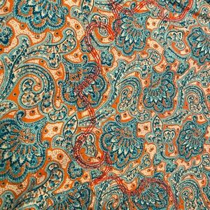 Vibrant paisley design. Button-down style. Long sleeves with contrasting cuffs. Perfect for casual wear.