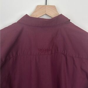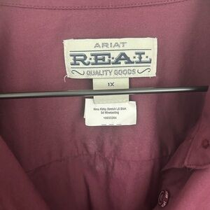 Ariat real Kirby Stretch Western Shirt in color Winetasting (deep burgundy). Made with durable stretch fabric for comfort and ease of movement. Features a flattering fit, button-down front, chest pocket, and classic Western yoke styling. Perfect for riding, ranching, or everyday wear.
