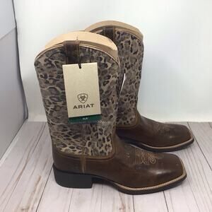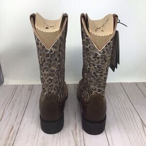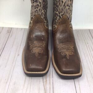 Women’s Cheetah Print Ariat Round Up Wide Square Toe Boots Pearl Brown Size 9