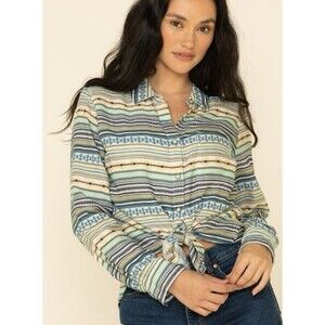 Ariat Womens Shirt Button Back And Front Stripe Long Sleeve Green Blue Size XXL