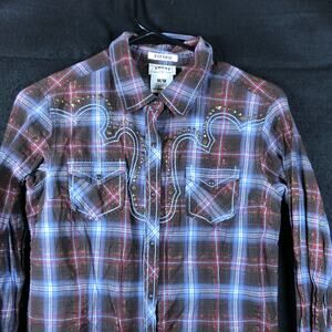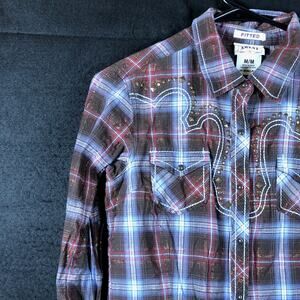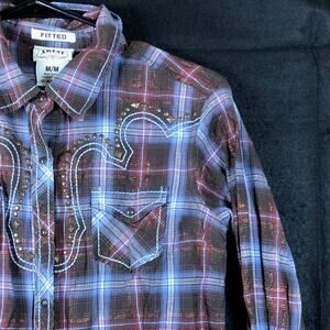 Ariat Womens Shirt Multicolored Plaid Fitted Snap Long Sleeve Metallic Blend M