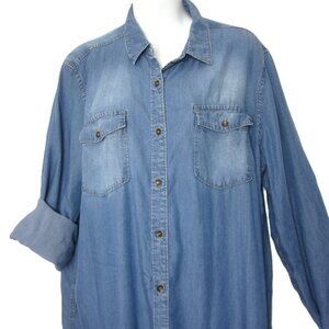 Ariat Women's Size 2X Blue Chambray Dress Button Western 100% Tencel