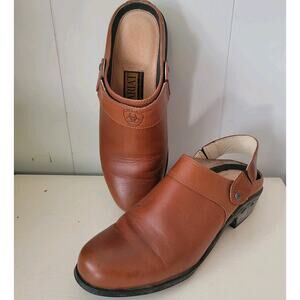 Ariat Womens Size 7B Western Closed Toe Leather Mules Shoes Brown Slip On Sling Backs. Nice condition. Only worn a couple times. Great with jeans or skirts. Easy and quick on and off.