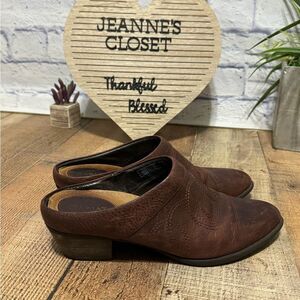 Ariat Women's Size 9 B Mules Brown Leather Embroidered Pointed Toe Heeled Clogs