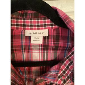 Ariat Womens Snap Button Plaid Shirt Sz M Embroidered Fuchsia