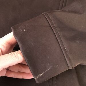 Flaws: multiple discoloration areas on front of jacket & on sleeves (as pictured)
