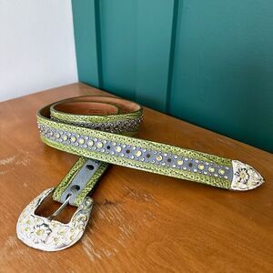 Ariat Women’s Suede Dusty Blue Green Leather Heavily Beaded Bling Chartreuse Stone Belt