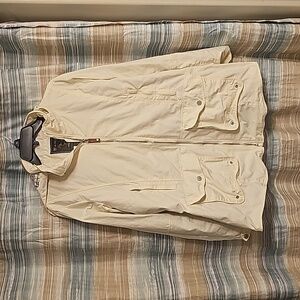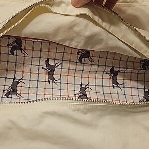 The horse-bit detail and leather pulls add sophistication; side pockets and a packable hood make it functional.