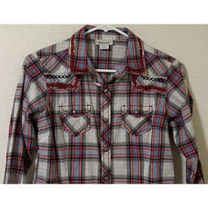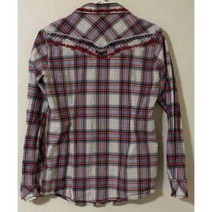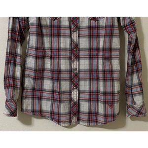 Ariat Women's Western Long Sleeve Metal Snap Button Small Plaid Shirt Red Gray