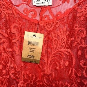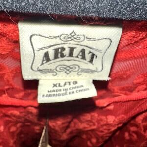 Ariat Women's XL Medallion Top – Fiery Red – Lace Cap Sleeves – Elastic Waist