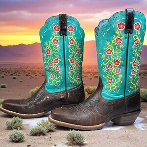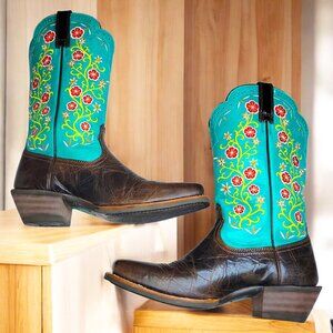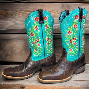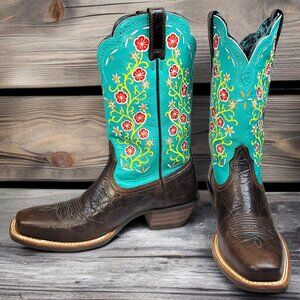 Ariat Women’s leather Turquoise Floral Embroidered Cowboy Boots