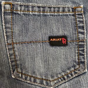 Durable Ariat Work FR M3 Loose Fit Jeans in mens size 29x32. Built for safety and comfort on the job, these flame-resistant (FR) jeans are made from 100% cotton using USA fabric and manufactured in Mexico. They meet CAT 2 / NFPA 2112 standards and feature an ARC rating of 20.0 ATPV.