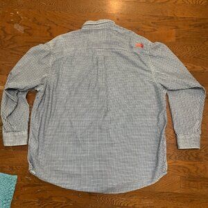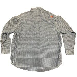 Ariat shirt, men's button-down, XXL shirt, navy white checkered, FR clothing, NFPA compliant shirt, durable work shirt, protective workwear, cotton blend shirt, Ariat FR shirt, flame-resistant workwear, industrial safety shirt, men's protective clothing