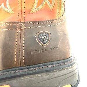 Ariat WorkHog Mens 14D Pull-On Western Boots Steel Toe 100D6961 Brown Orange